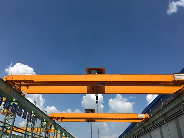 成本:同等起重量下,设备自重比单梁降低 10–15%,10 年维护成本仅为单梁的 60% 左右。